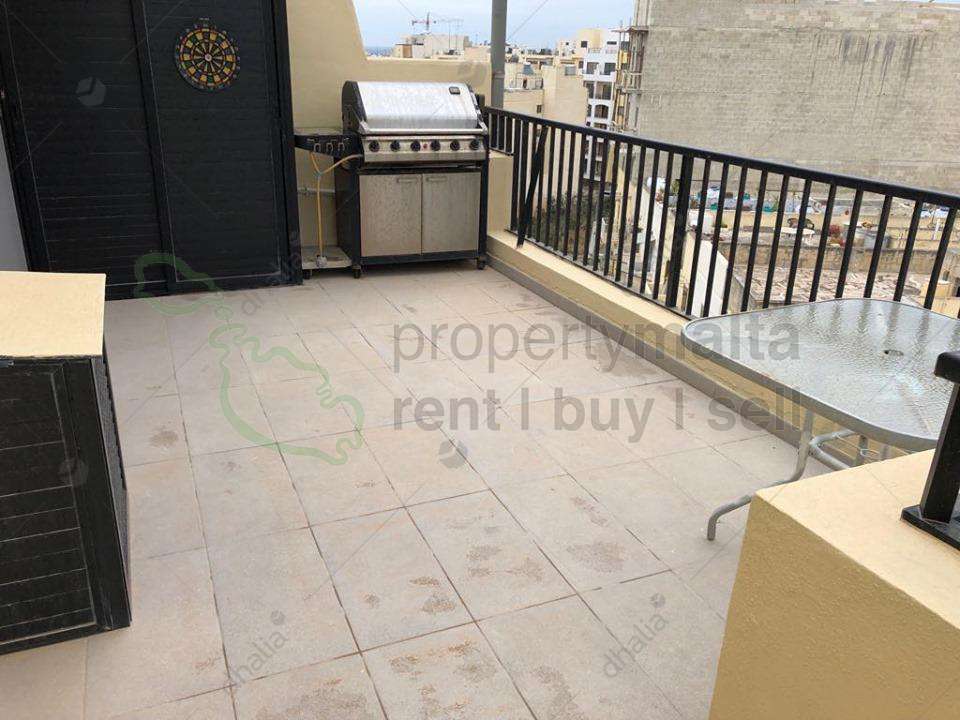 A very spacious, three-bedroom air-conditioned penthouse located minutes away from the promenade. The layout consists of an open-plan kitchen (equipped with a dishwasher) living/dining area leading to a terrace a guest bathroom, a main ensuite shower room, and three double bedrooms, two of which have their balcony. Complementing this property is a lock-up garage. Worth viewing!