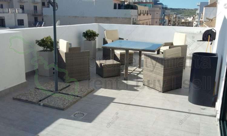 Very well-furnished penthouse comprising of a kitchen/living/dining leading to a spacious terrace. This penthouse consists of two bedrooms with an ensuite shower room. The property also has a balcony at the back. It is fully equipped including quality appliances and furniture and is fully air-conditioned. This penthouse also has access to a communal pool.