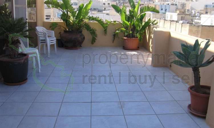 A well furnished, two-bedroom penthouse in Qawra. The property consists of a kitchen/living/dining leading onto a large sunny terrace enjoying sea views, and a bathroom, Property is situated close to the promenade.