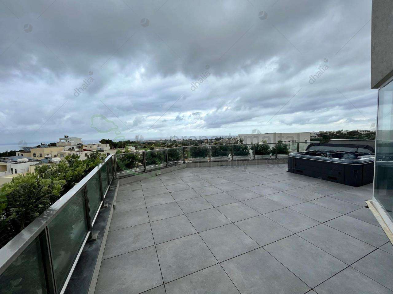 Luxuriously finished unique penthouse situated in a peaceful and tranquil area of Gharghur and within walking distance to amenities. The property consists of a combined kitchen/dining area, separate living area, main bathroom, boxroom and two double bedrooms main with ensuite. Complementing this property is a huge front terrace enjoying distant sea views and equipped with outdoor furniture / Jacuzzi. Served with the lift which leads directly to the property. Fully equipped and air-conditioned throughout.