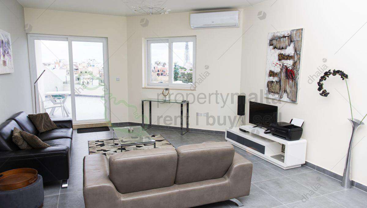Fully serviced three-bedroom penthouse located in the centre of the quiet and picturesque village of Gharghur. The penthouse is ideal for families and couples who wish to enjoy a high living standard. It forms part of a modern block of apartments and is served by a lift. The layout consists of a large open living/dining and kitchen area leading to a big terrace ideal for outdoor entertaining with outdoor furniture and a BBQ offering valley and distant sea views. The kitchen is fully equipped to serve the most advanced cook and all kitchen appliances are from 2017. Furthermore, the penthouse has three double bedrooms (one of which has ensuite facilities) and the main bathroom. The penthouse rents with a lock-up garage. There is direct access to the lift from the garage complex.
