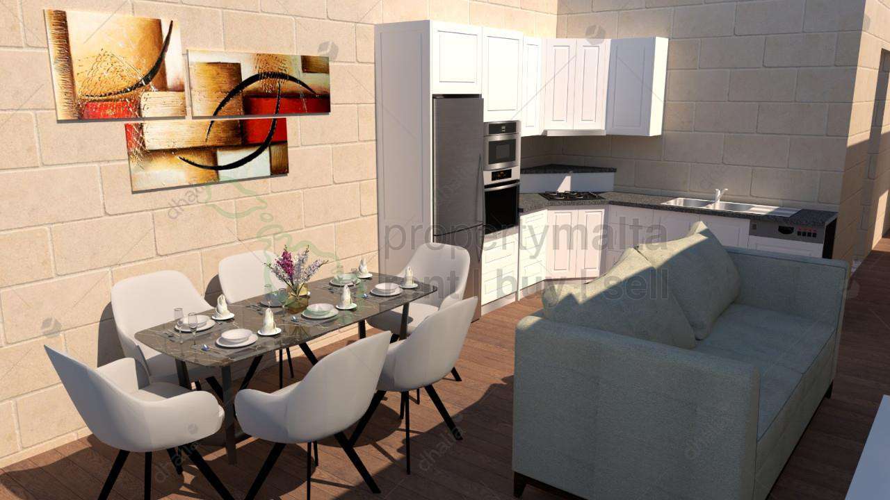 This penthouse with an internal area of 91 sqm is situated in a a very quiet area in Xewkija yet close to all amenities. This property comprises of an open plan kitchen/dining/living room leading to a god sized terrace, two bedrooms (one with ensuite facilities), a main bathroom and a balcony.