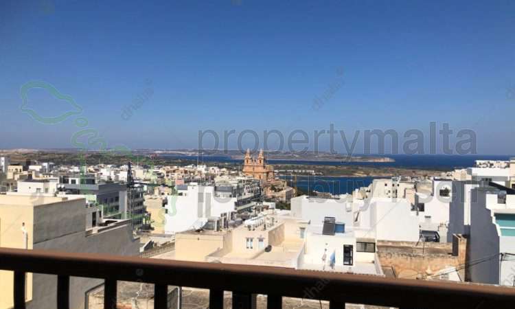 Luxurious, spacious, bright, and airy two-bedroom air conditioned penthouse situated in central Mellieha enjoying spectacular views from the front terrace. The property consists of an open-plan kitchen (equipped with a dishwasher) /living/dining area leading to a front terrace, two double bedrooms, a main/guest bathroom with shower, and a large back balcony. The property is fully equipped and served by a lift. Close to all amenities.