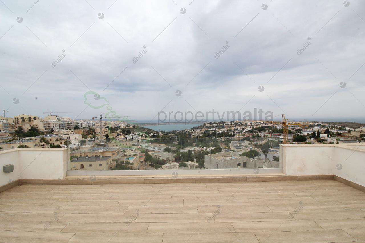 Luxuriously finished penthouse enjoying stunning views of Santa Marija Estate and all the way up to Gozo. All penthouses offer over 120sqm of internal space and over 40 sqm of external space. The typical layout offers a spacious open plan, three bathrooms (one with en-suite), box room, front terrace and a balcony at the back. All apartments/penthouses are being sold finished and to high standards including internal doors and bathrooms as well as intelligent lightening.