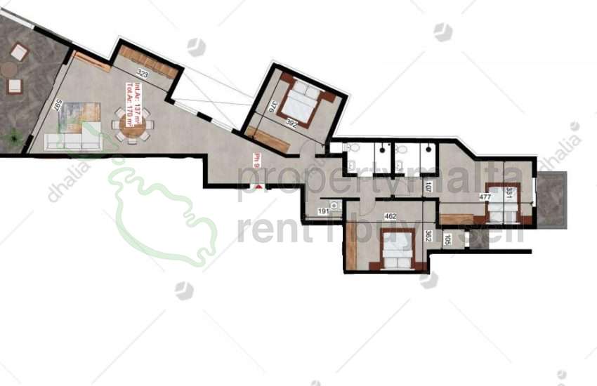 This spacious 159 square meter penthouse, complete with airspace, is situated in one of Mosta’s most desirable locations, offering excellent potential for buyers looking to personalize their home. The property is being sold freehold and comes semi-finished, with doors and bathrooms excluded (a detailed finishing list is available upon request). The open-plan living area is bathed in natural light, creating a bright and welcoming atmosphere, while the generous terrace provides stunning, unobstructed views. Perfect for those seeking a stylish home or a smart long-term investment, this penthouse offers a unique opportunity to create your ideal living space.