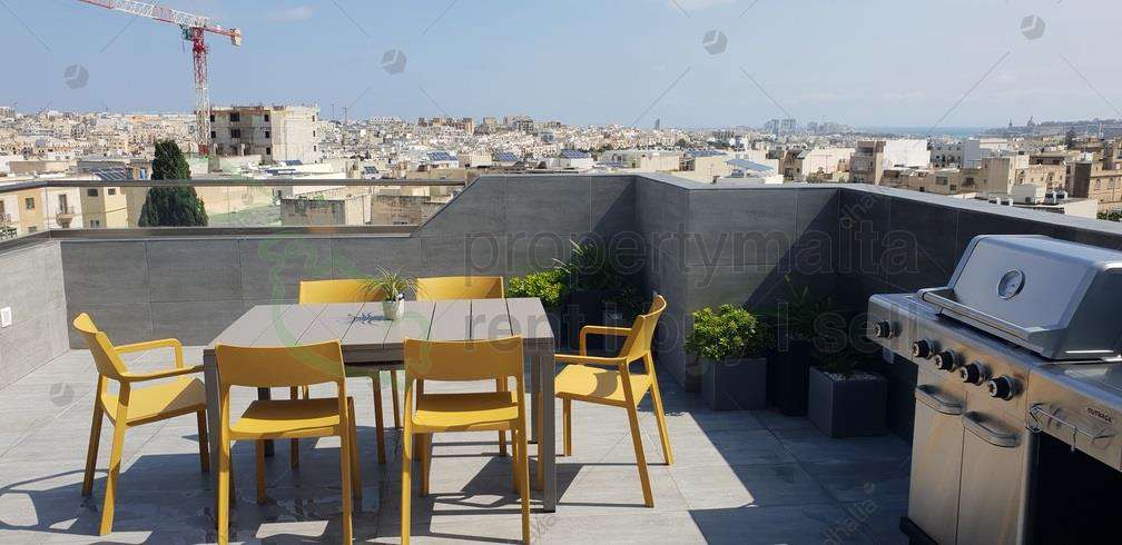 A luxuriously finished and furnished penthouse located in a sought-after area, close to many amenities and commercial business centers. The layout comprises an open-plan kitchen/living/dining area leading onto a good-sized terrace with outdoor furniture and a BBQ, ideal for entertaining. Top of the range kitchen and appliances. The main bedroom has an ensuite shower and a back terrace, and the single bedroom leads onto the back terrace. The laundry area includes a washing machine and a tumble dryer. The property is fully air-conditioned.