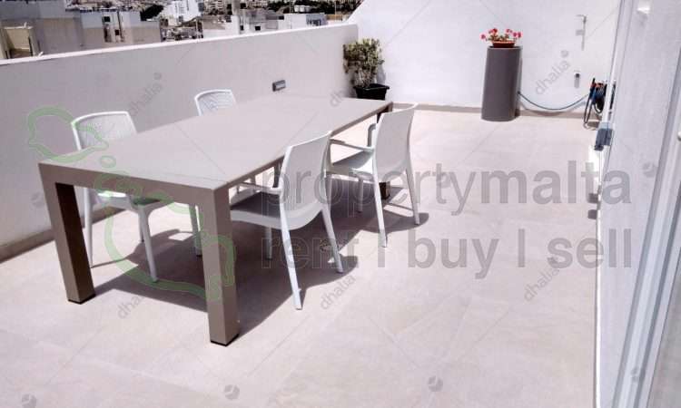 This luxuriously finished, sixth-floor penthouse is located on a quiet street of Santa Venera, close to Lidl. The layout is made up of a large open-plan kitchen/living/dining area leading to a good-sized terrace, two double bedrooms, the main bathroom, ensuite shower room, washroom and a back balcony.