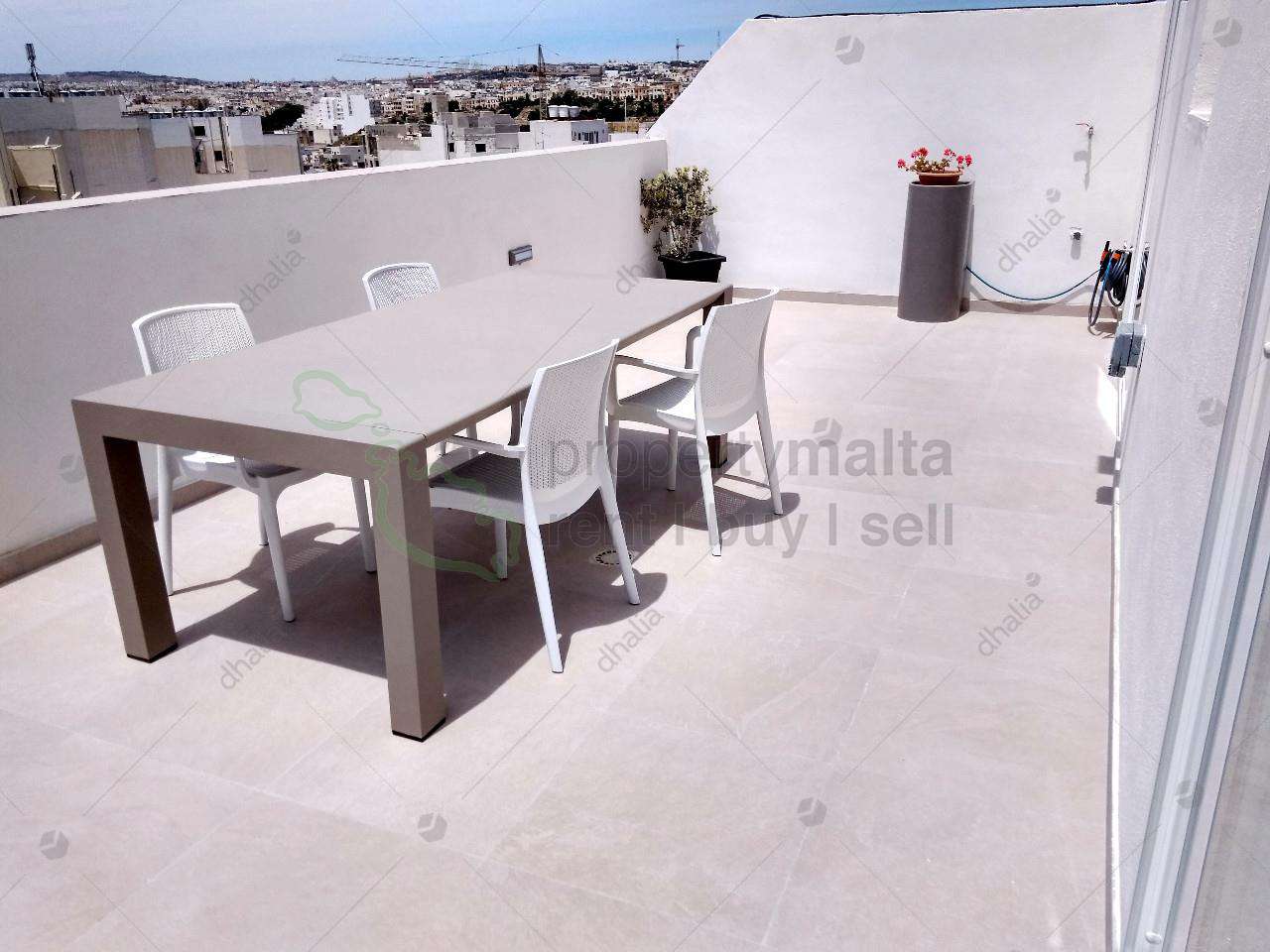 This luxuriously finished, sixth-floor penthouse is located on a quiet street of Santa Venera, close to Lidl. The layout is made up of a large open-plan kitchen/living/dining area leading to a good-sized terrace, two double bedrooms, the main bathroom, ensuite shower room, washroom and a back balcony.