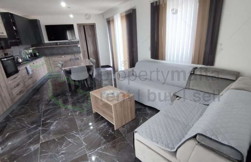 Qawra – larger than usual designer finished superb three-bedroom Penthouse/Apartment including a garage. Apartment has a spacious layout comprising a kitchen /living/ dining, three bedrooms, master with en-suite and main bathroom. The property also comprises a larger than usual laundry room, a small office area in one of the bedrooms and also two back terraces. The property is extremely well lit, flooded with natural light in all rooms and is very close to all amenities and within walking distance of the sea.
