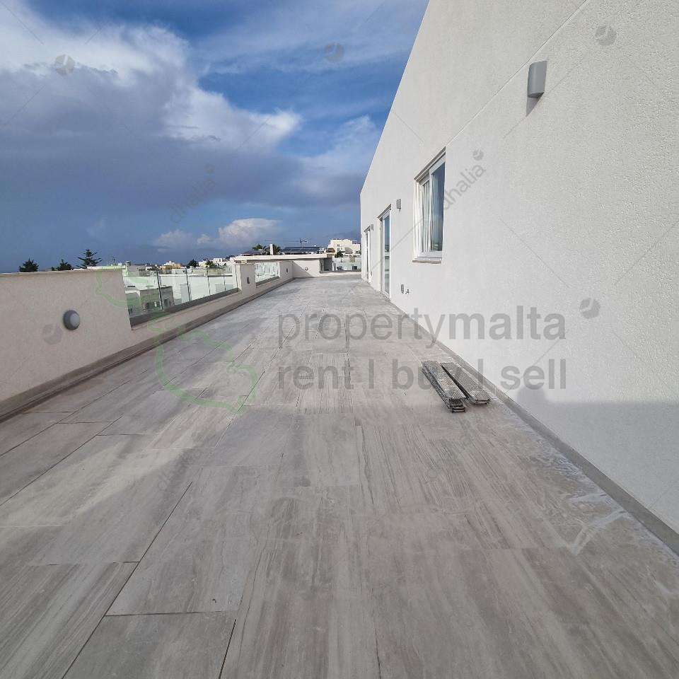 Luxury penthouse in an exclusive block with stunning views up to Gozo. Brand new, fully air-conditioned, three double bedrooms with two bathrooms. Laundry room and front terrace. This property is pet-friendly.