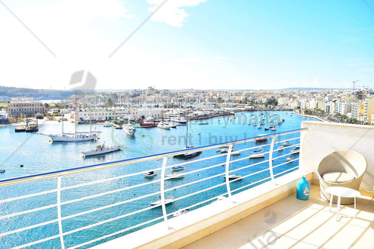 Luxuriously finished and furnished two bedroom penthouse situated on the sought after Sliema seafront. Property comprises a large kitchen/living/dining area which leads onto a spacious terrace overlooking Valletta Harbour, two double bedrooms (main with shower ensuite and back balcony), a bathroom, laundry room and a study. Must see!