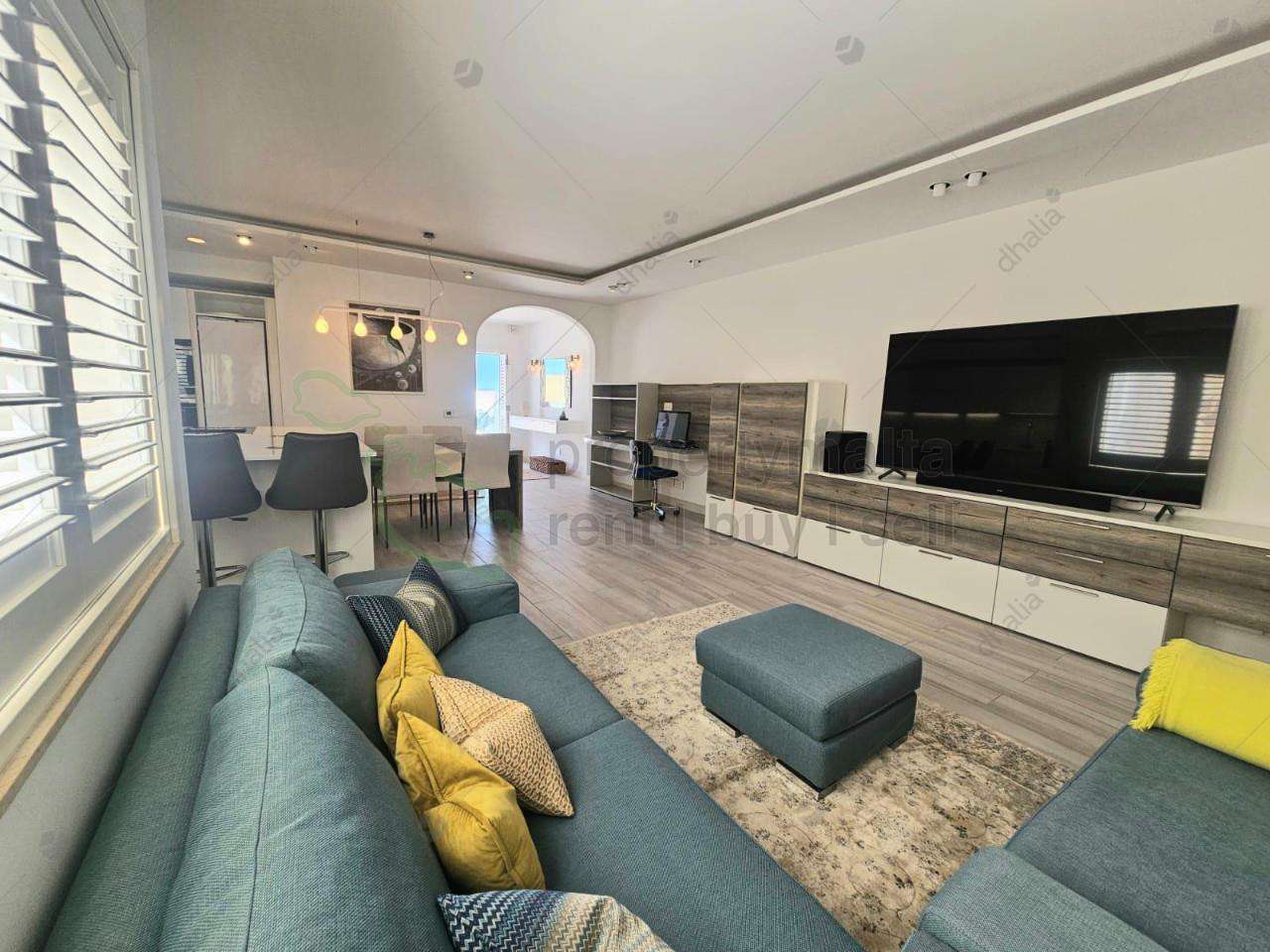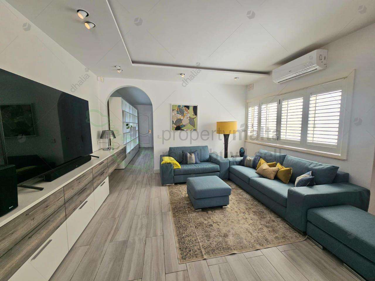 This private, not overlooked penthouse offers 160 square metres of luxury living within a small block of six units, with full ownership of the airspace. A bright entrance hall leads to a spacious open-plan kitchen/living/dining area opening onto a front terrace with distant sea views, while a peaceful back terrace overlooks gardens. Featuring two double bedrooms, main bathroom and ensuite, underfloor heating, towel warmers, a separate washroom, a fully-equipped modern kitchen with stand standalone fridge freezer, wine chiller and quality appliances. Enjoy year-round comfort with air conditioning, PV panels and a solar water heater. A rare find combining style, efficiency, and exclusivity in a sought-after residential area in the urban conservation area (UCA).