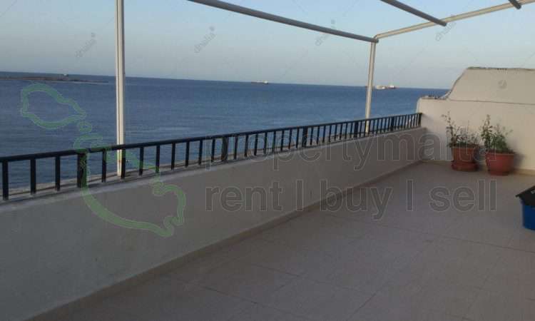 This penthouse offers stunning views of the open sea, with an open kitchen and dining area, two bedrooms (including a master with an en-suite), a main bathroom, and elevator access. It is fully air-conditioned and move-in ready.
