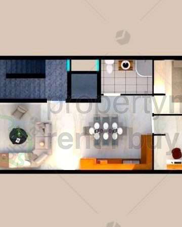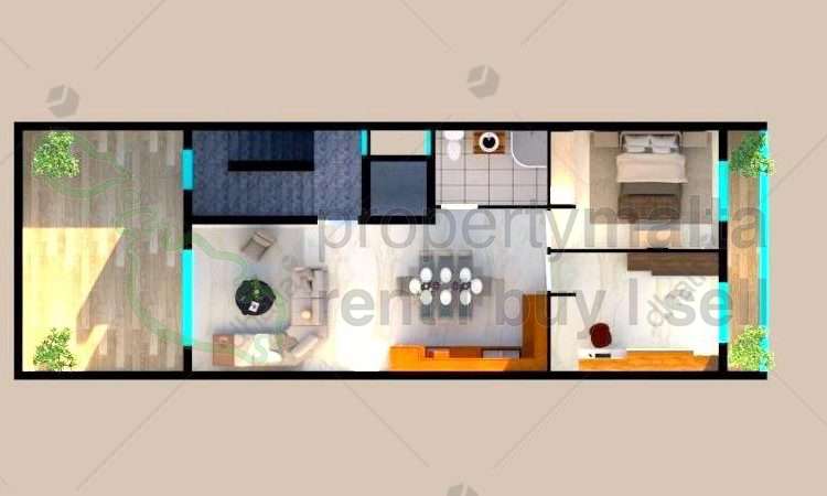 One-bedroom penthouse sold in shell form. The layout consists of an open plan, bedroom, study room, bathroom, front and back terrace. Freehold.