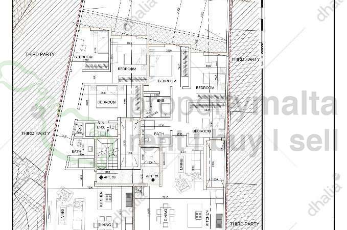 This project being sold on plan is situated in a very quiet residential area of Zurrieq. Enjoying three bedrooms and two bathrooms the layouts are in the form of an entrance into an open plan kitchen/living/dining a wide corridor leading you to three bedrooms,the main bedroom having an ensuite.This penthouse has a large front measuring 22 square metres and a back balcony.Airspace optional at 50000 and garages underlying are also optional.