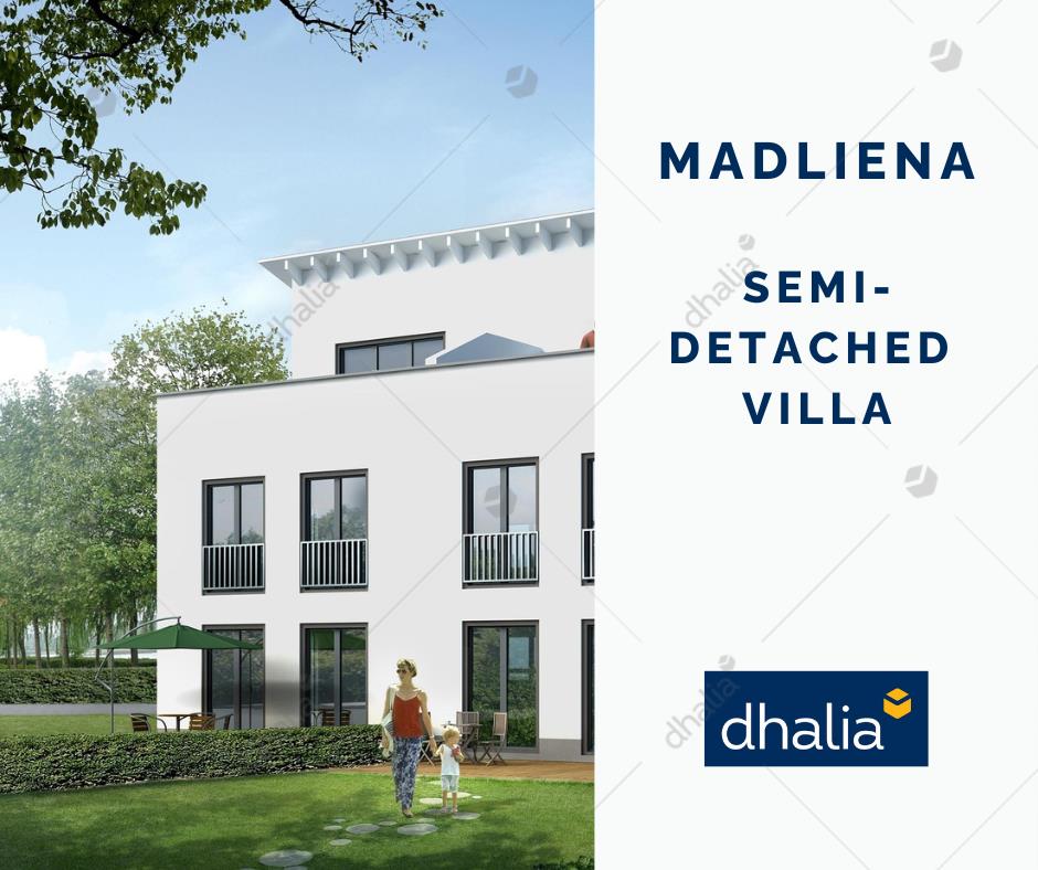 Madliena, a semi-detached villa currently under construction and offered in shell form. The ground-floor level is in the form of a welcoming hall leading to a 127 square metre open-plan kitchen/living/dining area, and a guest bathroom. The pool area spans over 273 square metres. The first floor level hosts three double bedrooms, all with an en-suite facility, whilst on the roof level is a washroom which leads to the roof terrace. A full basement garage complements this property, which has ample space for parking, a games room with a lounge area, storage space and a bathroom. The property also benefits from a lift from the basement level.