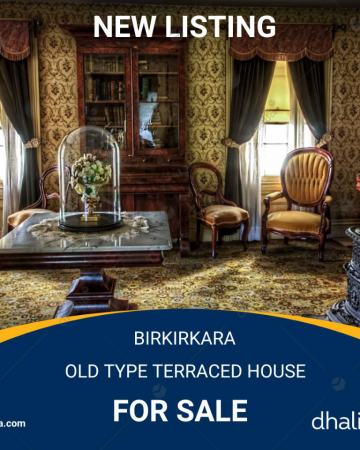An ordinary finished terraced house comprising of three double bedrooms, one bathroom, kitchen, backyard and a small garden, private roof, and front and back balconies.