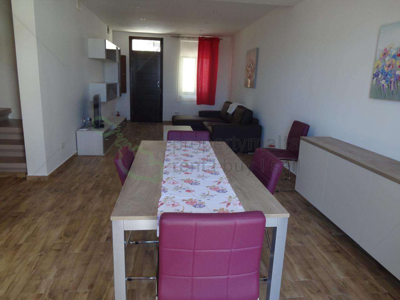 Three-bedroom terraced house in Marsascala with front garden and backyard. Ideal for entertaining and in a quite residential area. One-car lock-up garage is included.