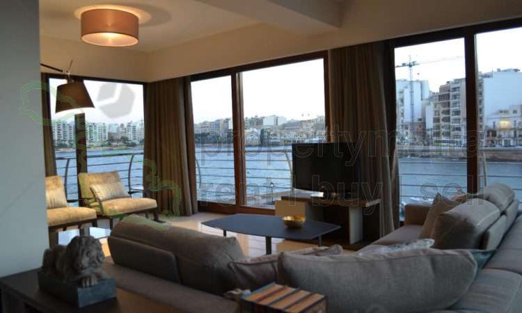 Set on the water’s edge of Spinola Bay, this three-story detached modern house has been finished and furnished to the highest of standards. It is equipped with an internal lift, alarm system, is fully air-conditioned with all the latest amenities. You will find three bathrooms (one per floor), a main kitchen and dining area on the ground floor, two bedrooms (double and single) and a laundry room on the first floor and a spectacular living room with extra kitchenette on the second-floor commanding 270-degree views of St Julian’s and Spinola Bay. The roof top provides an amazing terrace, perfect for outdoor entertaining.