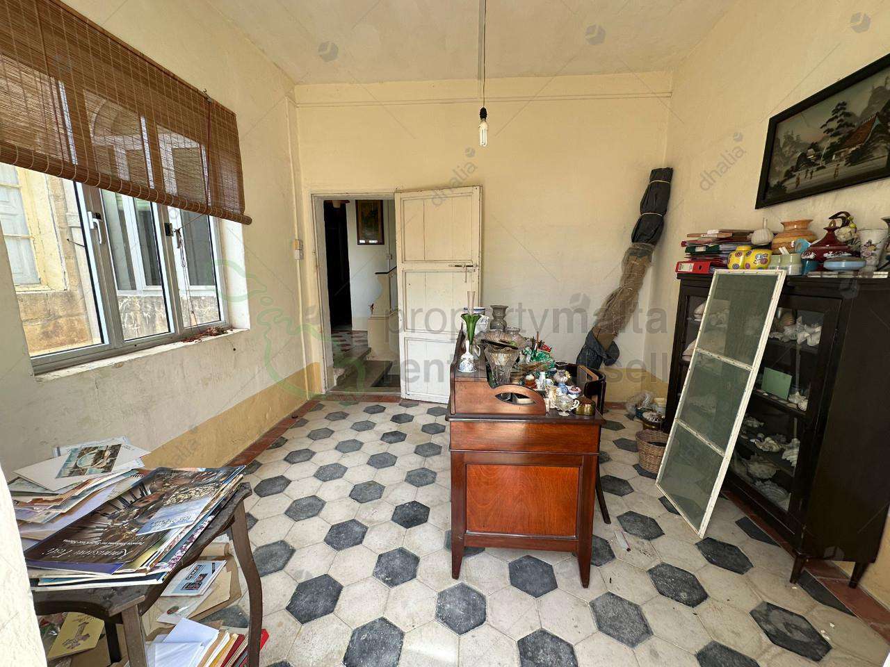 A double-fronted Townhouse located in central Sliema, within a U.C.A.-designated residential area. Having a footprint of c.360sqm (c.200 sqm of which make up the back garden) and built over two levels, the property comprises 7 rooms (of varying sizes), a welcoming entrance hall, two storage rooms, bathroom, guest toilet, a spacious central courtyard with water-well leading to the large garden (having ample space for a swimming-pool), front traditional timber balcony, external terrace on the 1st-floor overlooking the courtyard and garden, a large roof terrace area enjoying sea and Valletta views. The property is over 100 years old. Original features include : high ceilings, timber ceiling beams, coloured patterned floor-tiles, flagstone flooring, a typical stone `garigor` to roof level and an original wide stone staircase. A street-level garage (`remissa` type) with separate storage area also forms part of the property. The property is in need of renovation/conversion works. Contact us with your consideration/viewing.