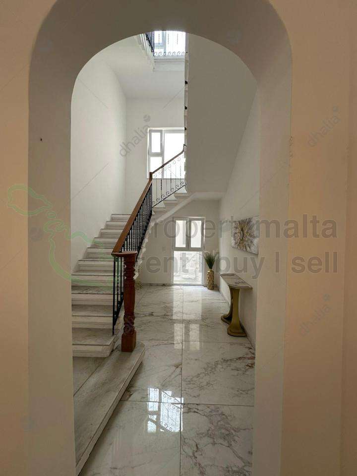 A 6-storey Townhouse located in Sliema’s `Urban Conservation Area` (U.C.A.) and within a short walking distance to most amenities and the seafront promenade. The property has a total area of approximately 440 square meters. Spacious accommodation consists of a modernised kitchen/dining, a guest bathroom on the ground floor level, sitting area, two double bedrooms (both leading to the front balcony), a main bathroom on the 1st floor level, two spare double bedrooms (also leading to the front balcony), a large main bathroom leading to a back balcony on the 2nd floor level and a large living area which can be used as a 2nd kitchen (and/or a 5th bedroom if needed) leading to the front terrace on the 3rd top-floor level. A small pool/jacuzzi installed on the roof level enjoys distant sea views. Property will be sold fully furnished with all its overlying airspace and its large basement.
