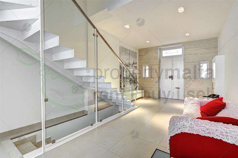 Luxurious, one of a kind designer-furnished townhouse, conveniently situated seconds away from Spinola bay in the heart of St Julian’s. Accommodation comprising a welcoming hallway leading onto a luxury fully equipped kitchen/dining room, a designer steel staircase takes you up to two double bedrooms main with bathroom en-suite, and on the second level one finds a further double bedroom with another shower en-suite leading to a roof terrace. Property also enjoys a further living room which leads to a lovely outdoor terrace ideal for BBQ and outside dining. Property is also complimented with a good sized back yard. Finishes include three LCD TV units, solar water heaters, inverter technology air-conditioning system throughout, double glazing, insect screens and much more. Not to be missed!